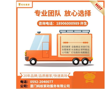 廈門螞蟻家政服務有限公司,是廈門一家專業性的搬家、保潔公司。提供專業公司搬家、個人搬家、跨省長途搬家、搬鋼琴、搬廠、家政保潔等服務。公司成立20年,是廈門市成立較早的搬家、保潔公司之一。在社會各界的大力支持下,經過全體員工的不懈努力,公司發展迅速,從初期的車輛組已發展成一條龍專業性搬遷、保潔公司,為確保我們的服務質量,所有員工均接受過嚴格的專業培訓。具有豐富的搬家經驗和良好的服務意識。